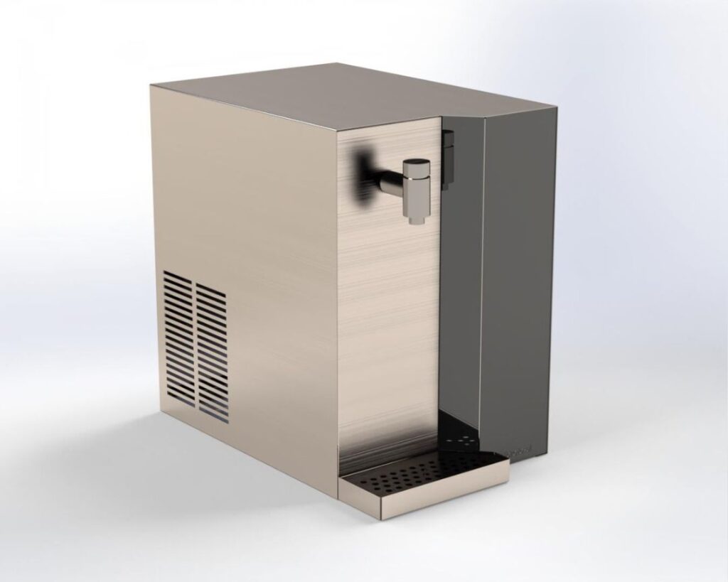 A Plaza é um bebedouro multifuncional para praças e parques, oferecendo água gelada, quente, natural e até para pets. Com design de acesso duplo e brisa refrescante, é ideal para locais movimentados.